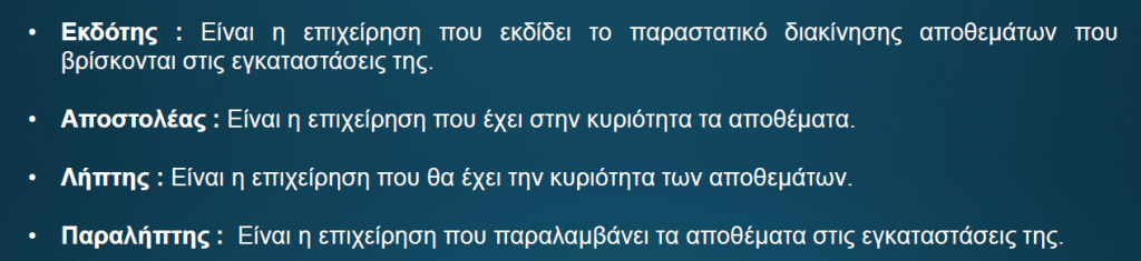 Οι Ρόλοι στη Διαδικασία Ψηφιακής Διακίνησης Αποθεμάτων