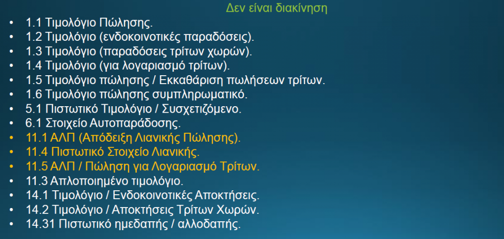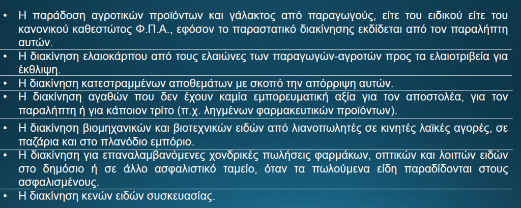Αναλυτικές Εξαιρέσεις από την Υποχρέωση Έκδοσης Παραστατικών